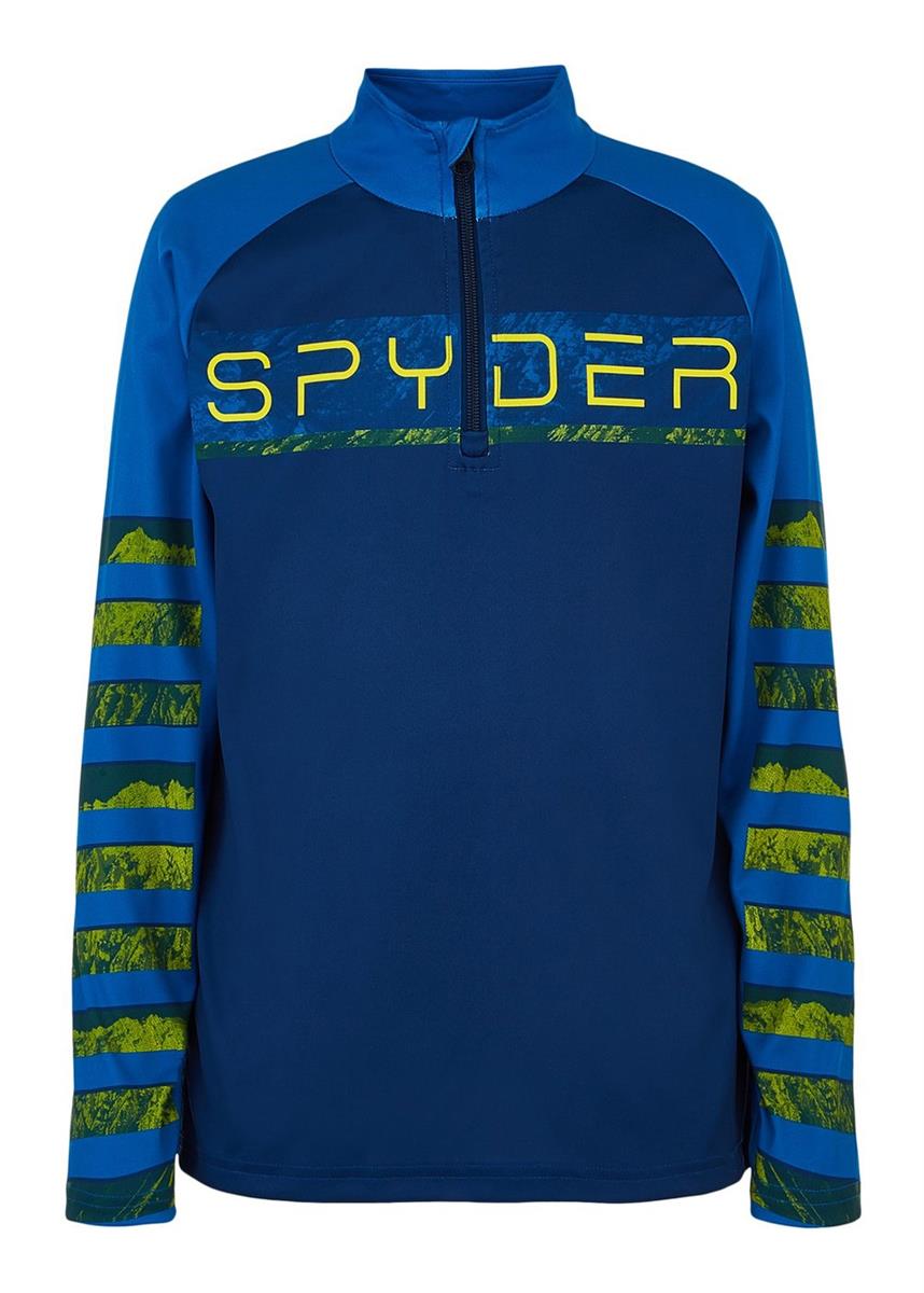 Designed for dry wearing warmth, the Peak keeps kids on the move thanks to its stretch polyester interlock construction. It wicks moisture and dries quickly, keeping them comfortable and protected during high output cold weather fun. Custom mountain and SPYDER logo graphics are features on front, back and both sleeves. A freeski feel for the free spirited kid.