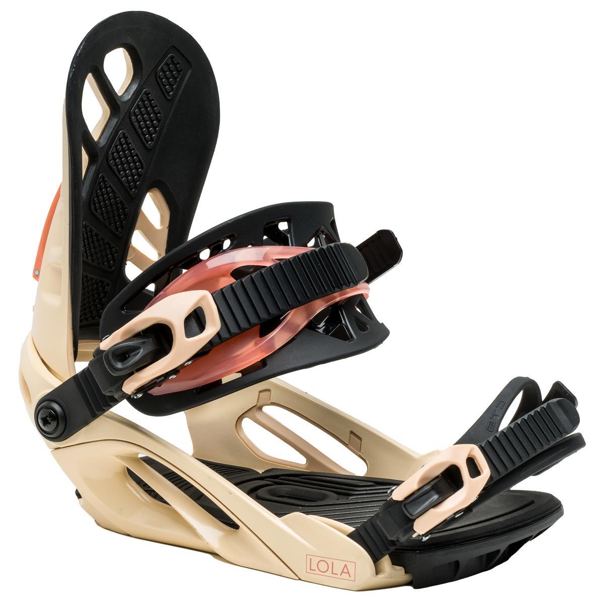 The Roxy Lola binding is designed to match the needs of the Roxy rider with adjustability, comfort, and performance features for precise control. A medium flexing binding, the Lola has a new responsive dual ankle strap construction for lightweight support and comfort, full EVA padded baseplate for extra shock and vibration absorption, and an asymmetric padded highback with tool-less adjustability for intuitive support and control. The baseplate is a responsive dual vent design for reinforced support that works in harmony with all the Lola components. The Roxy Lola is ready for any mountain adventure!