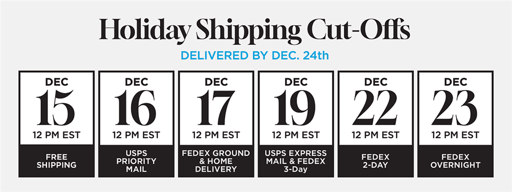 Below are our shipping cut-off days and times for our shipping options.