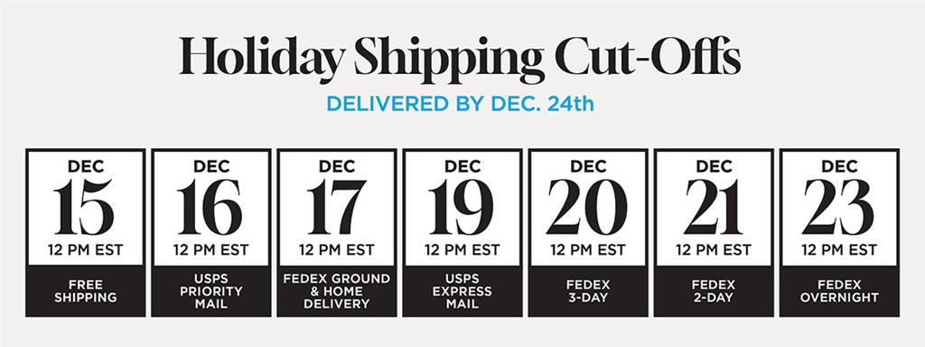 All orders must be placed before 12 PM EST via the services and dates listed below to be delivered in time for Christmas.