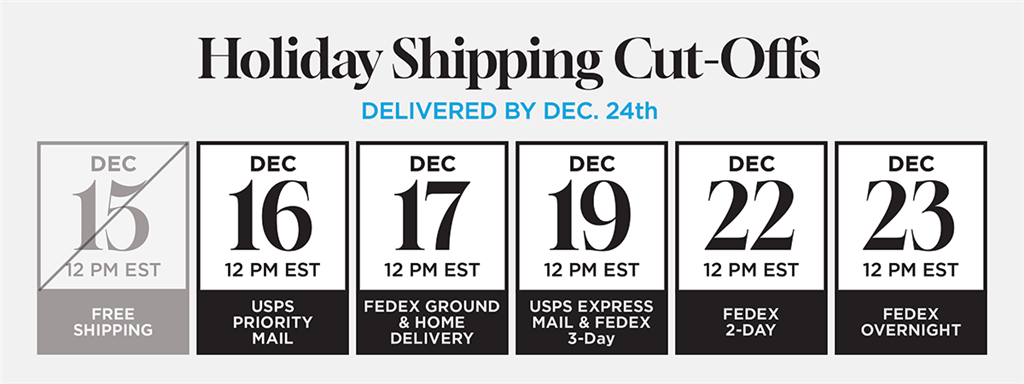 All orders must be placed before 12 PM EST via the services and dates listed below to be delivered in time for Christmas.